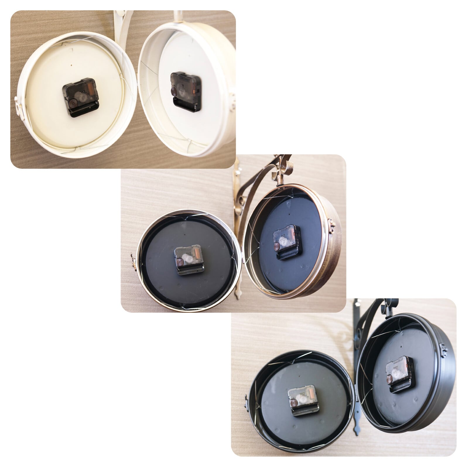 時計がくるくるまわる回転仕様の時計です。お好みで時計部分の角度を変えることができます。※ねじ込み式ではないので回しすぎることで時計が外れて落ちることはありません。