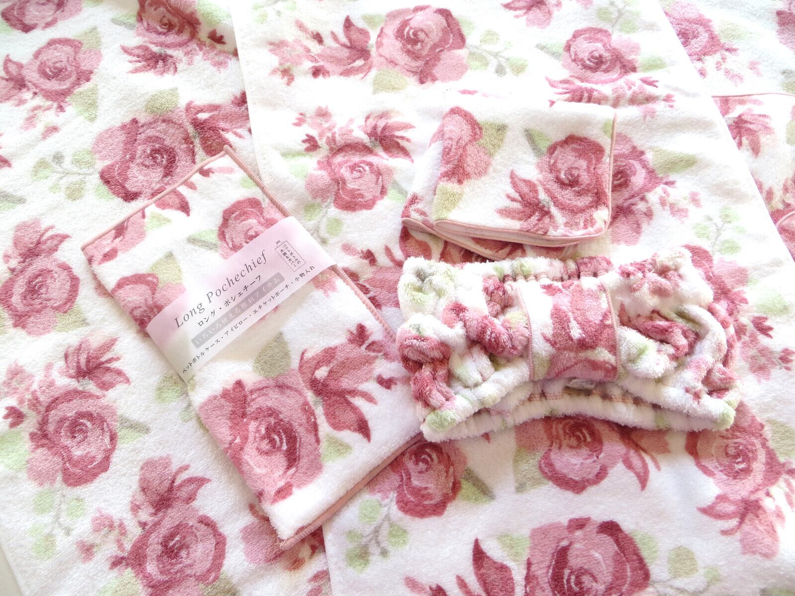 綿花そのものを感じさせるやわらかな風合いが無撚糸タオルの魅力。無撚糸(撚りをかけていない糸)で織り上げたタオルを使用した製品です。ふわふわの仕上がりとたっぷりの吸水性が自慢です。無撚糸タオルのイメージに合わせたやさしいカラーのバラ柄です。